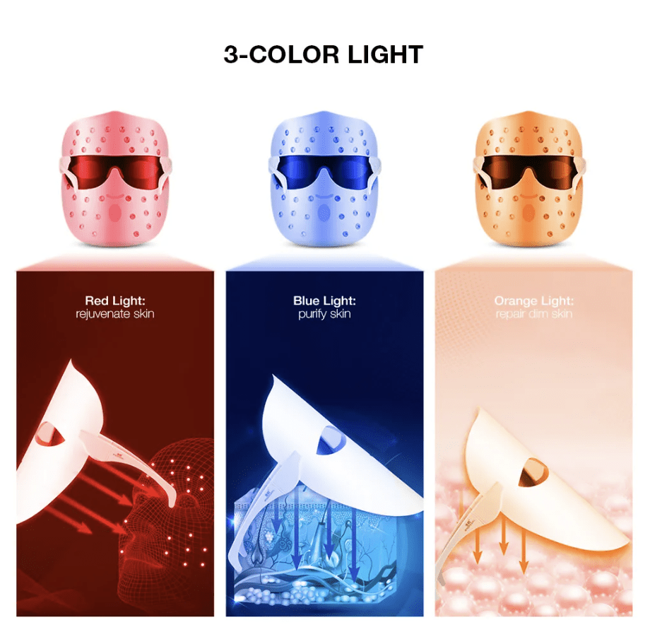 - Orange light repairs dullness; acts on the subcutaneous layer; repairs red erythema on the skin; makes the skin shiny