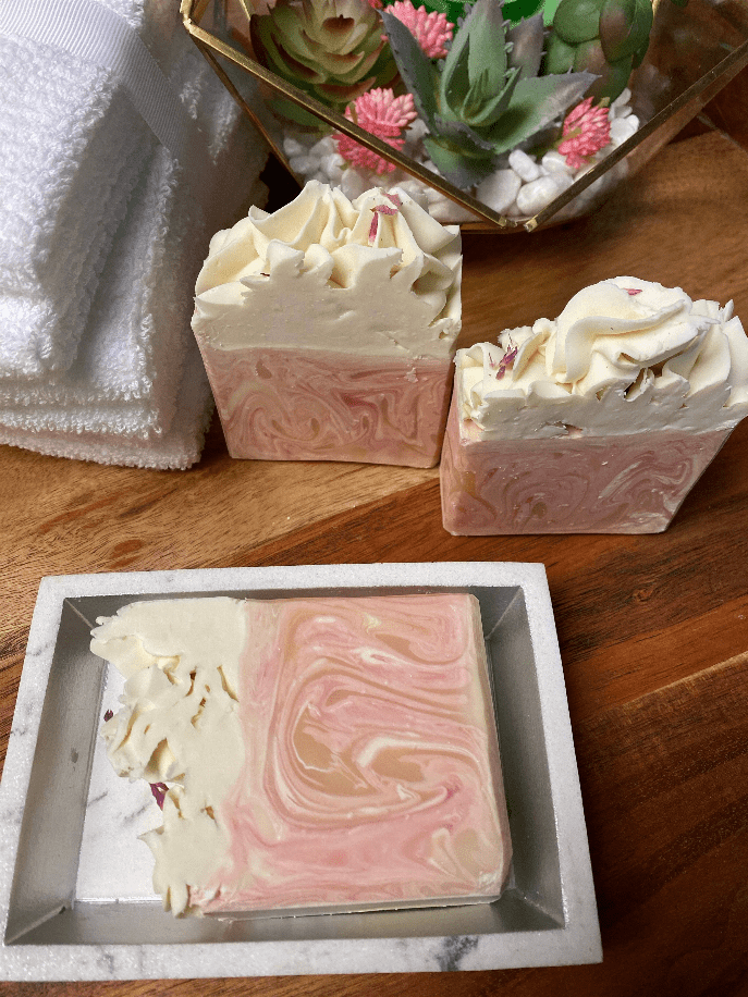 Our Cherry & Peach Bellini cold process soap is the perfect choice to assist you. Embedded with a yummy cherry scent which stays around all day, Cherry & Peach Bellini soap is an absolute delight. With a flowery icing top adding an aesthetically pleasing touch to this handmade product, Cherry & Peach Bellini is unique.