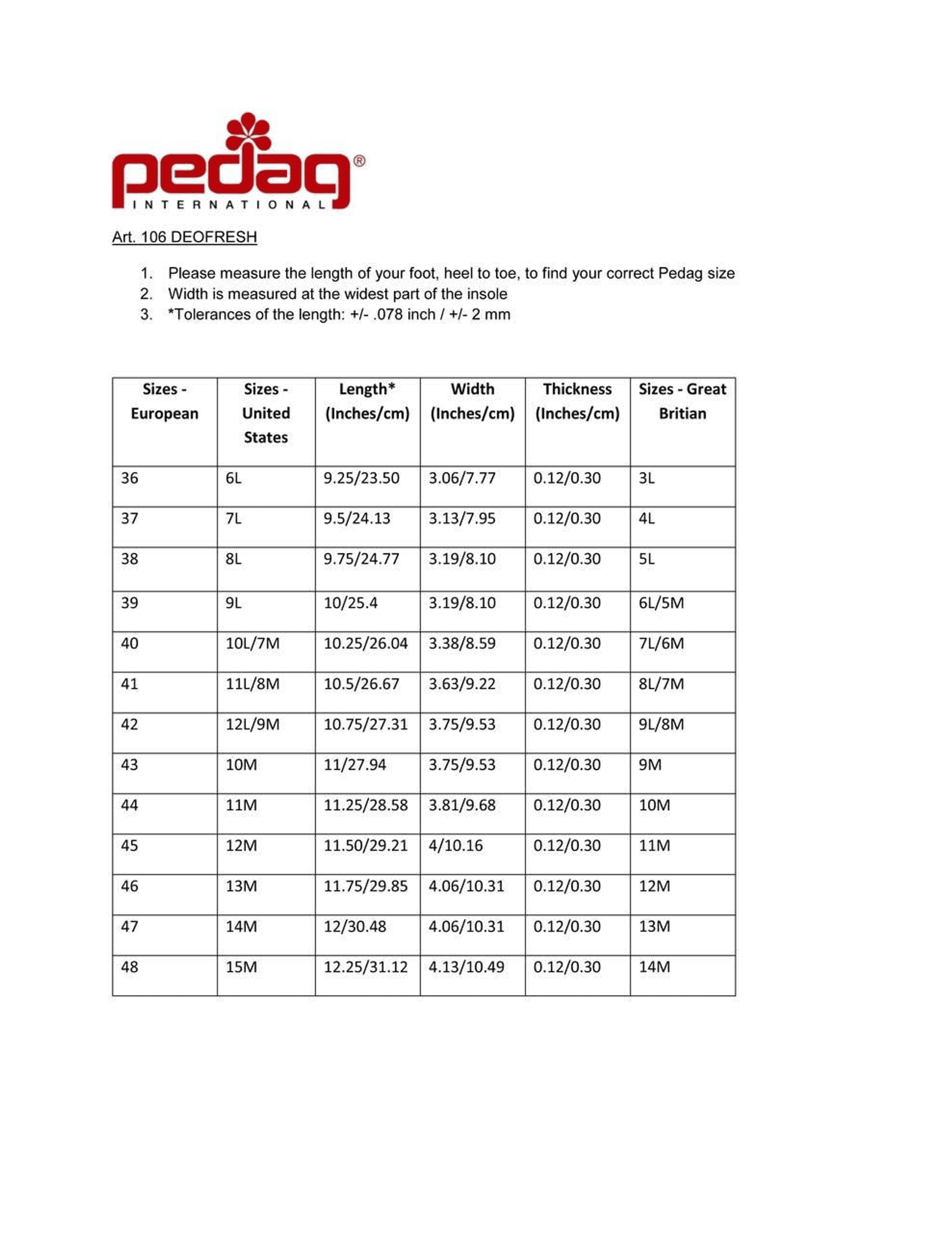 Pedag Deo-Fresh is a full length sustainable insole with anti-microbial silver. Air circulates and feet stay dry and comfortable. Top material is made from of natural, durable cotton and syntactic blend with anti-bacterial silver ions. Cushion is made from natural sisal fibers dipped in natural latex and provides comfort for hot & tired feet. Hand made sustainably in Germany from natural materials.