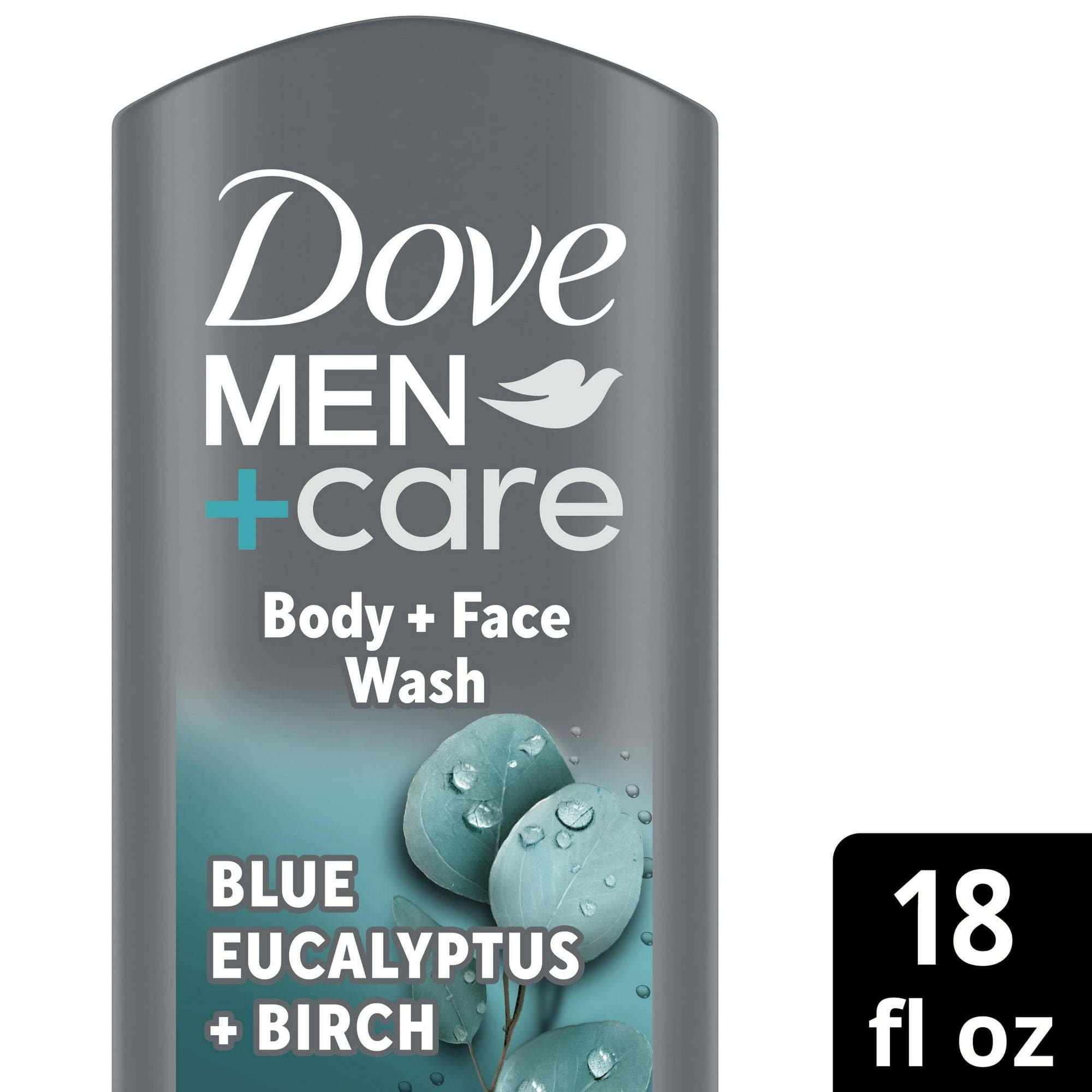 Dove Men+Care Relaxing Hydrating Face and Body Wash, Blue Eucalyptus and Birch, Men's skin is 25% thicker and contains higher levels of protein. That means more sweat, lower hydration levels, and easily irritated skin. So, forget about harsh soaps. Try Dove Men+Care Elements Blue EucalyptusBirch Body and Face Wash to your men's skin care and shower routine! Typical soap for men strips away oil and other essential skin components, leaving you with dry, flaky, and irritated skin. Dove Men+Care is a mild cleanser with plant-based moisturizers and skin-strengthening nutrients to help rebuild skin and skin proteins. Dove Men+Care Body and Face Wash is an easy-to-rinse, hydrating body wash that is clinically proven to fight dry skin better than a regular men's body soap or shower gel. It is also gentle enough to use as a face wash for men. This body wash is infused with the scent of natural eucalyptus to relax the senses. It's also just as effective for cleansing hands. For best use, squeeze Dove Men+Care Body and Face Wash onto your palm and rub your hands together to work the shower gel into a light foam to activate the Micro-Moisture Technology. Apply to your body and face. Rinse thoroughly. Dove Men+Care champions active fathers and the need for paid paternity leave. Find out more about their work in celebrating fatherhood and raising awareness around parental leave on the Dove Men+Care site. And as part of our commitment towards sustainability, each Dove Men+Care body and face wash bottle is recyclable and made with 100% recycled plastic and is PETA certified Cruelty Free.