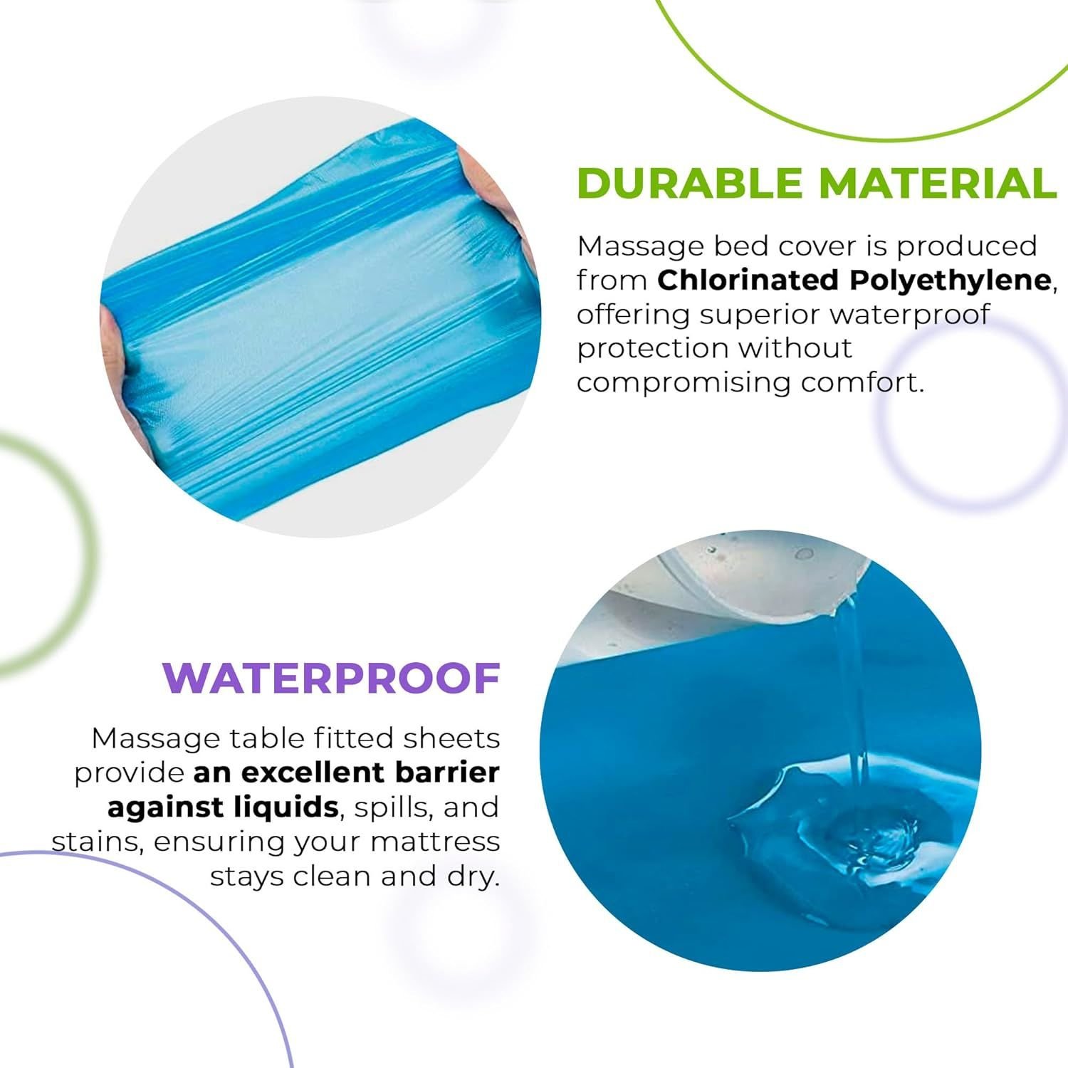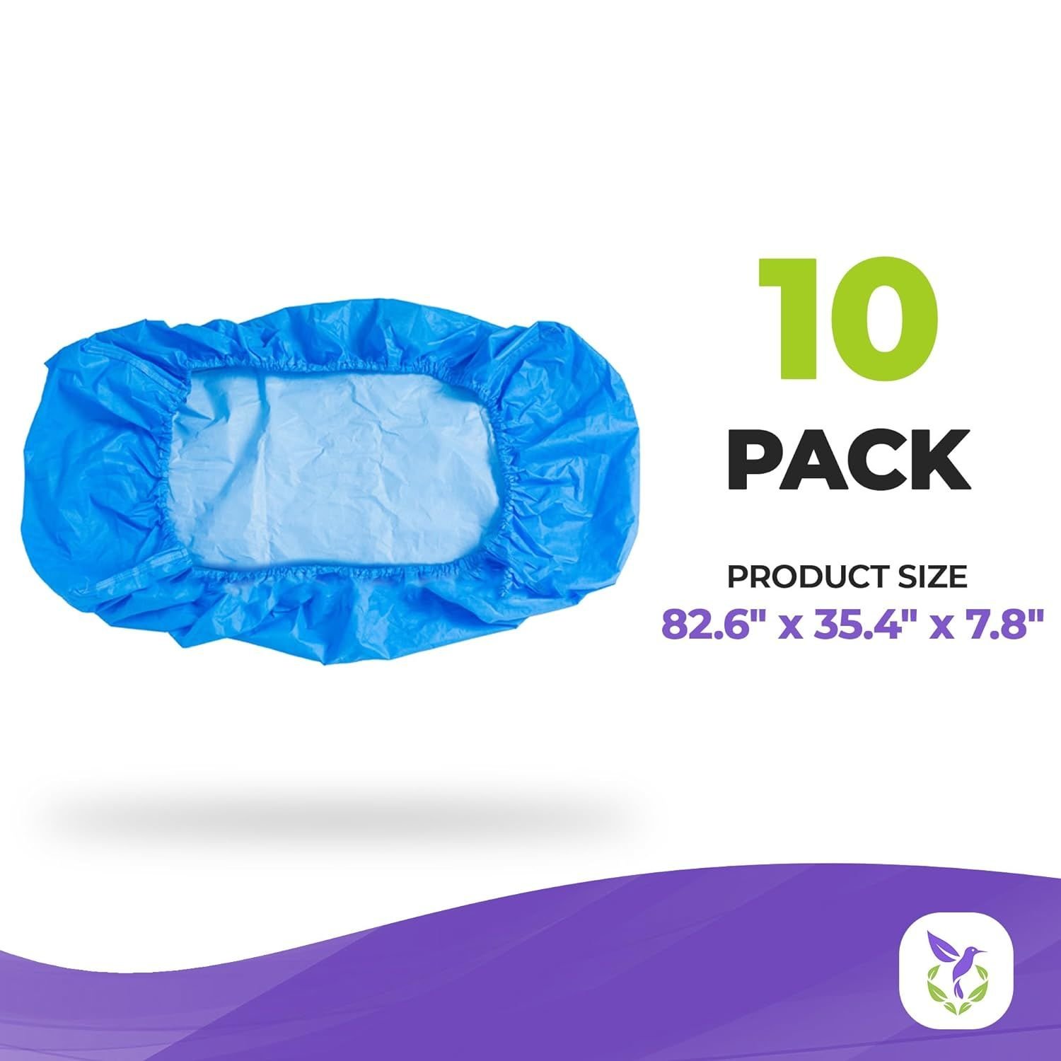 Massage Table Cover Blue Pack of 10 CPE Outdoor Mattress Cover Waterproof 82.6" x 35.4" x 7.8" Lash Bed Cover Protector for Salon SPA Tattoo Massage T