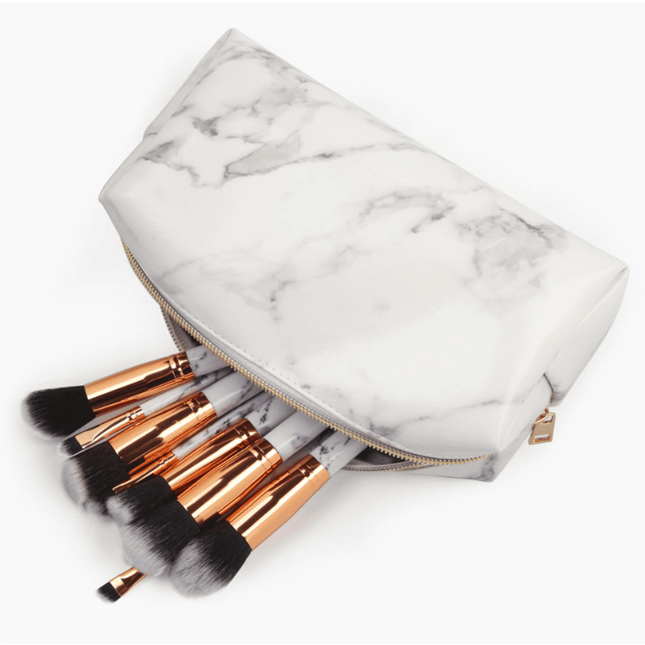 These 4 in 1 gorgeous and beautiful cosmetic bags are ideal for travel and for everyday use. They feature a chic and marvelous marble look created in waterproof high-quality vegan leather with a built-in handle and a gold zipper. These pretty and elegant bags are not just for women, they are practical and convenient enough for men as well, as they can also be used to store a shaving kit and electronics while on the go. They are made of waterproof material, that cleans easily without any damage. They also come with the softest and luxurious makeup brushes that have good-looking marble handles.