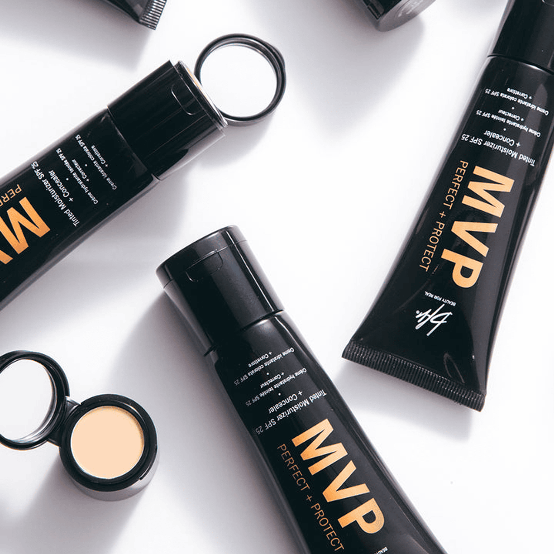 MVP Perfect + Protect Tinted Moisturizer is a miracle 5 in 1 complexion perfecter providing long wear SPF 25 mineral-based broad-spectrum protection. This lightweight tinted moisturizer provides hydration and medium coverage that's undetectable on the skin. A built-in primer diffuses and smooths the skin's texture and the concealer built into the cap delivers extra coverage where needed. MVP leaves skin smooth, even, and perfectly protected. Epigenetic technology repairs and eliminates the appearance of fine lines and wrinkles. Hyaluronic and Aloe Vera hydrate and mineral-based, full-spectrum SPF protects the skin from UVA/UVB and damaging free radicals. Hidden matching concealer in the cap, camouflages dark circles, and any skin tone imperfections.