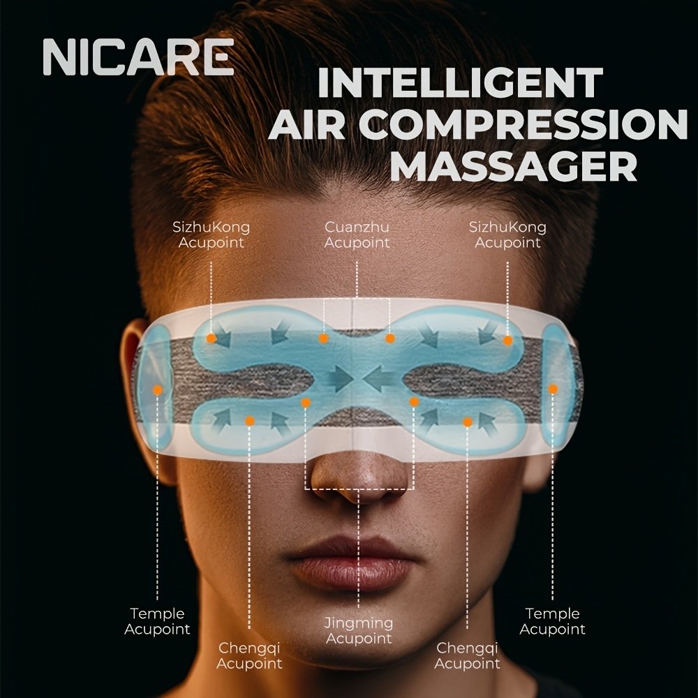 NICARE Eye Massager With Heat; Rechargeable Eye Heat Massager For Relax Eye Strain Dark Circles Eye Bags Dry Eyes Improve Sleep