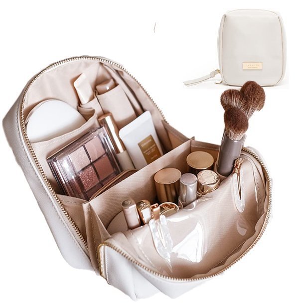 <p>[Style] This women toiletry bag includes 2 low-key colors (beige, pink) with elegant puffer look, exuding cozy and casual quality. Beautiful, wide open, roomy and spacious.</p>