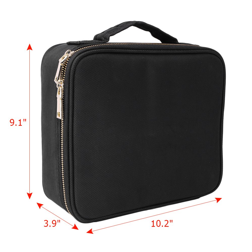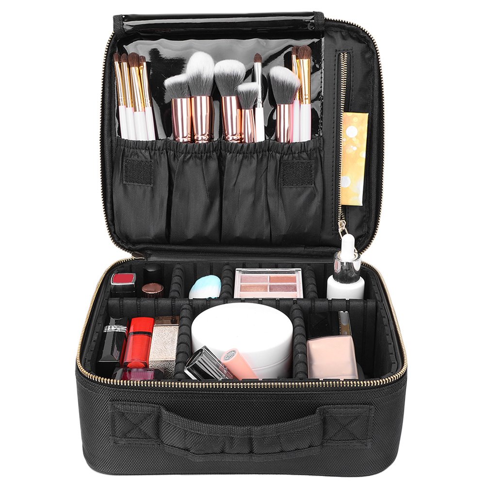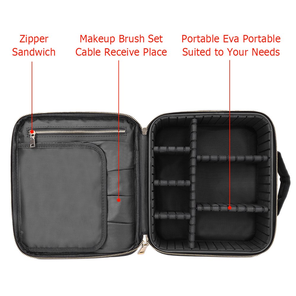 This makeup bag is a professional bag. It has several compartments and makeup brushes slots, you can keep your makeup and makeup brushes are neat and tidy. This makeup bag have enough space to storage your makeup and cosmetic accessories, like lipstick, lip gloss, makeup brushes, eyeshadow, makeup palettes, hairbrushes, skin care products, nail polish, nail art tools, shampoo and so on. Adopting high quality oxford fabric,it is waterproof and shockproof. Portable and lightweight design,so you can bring your cosmetics to anywhere.Come to order this makeup bag!