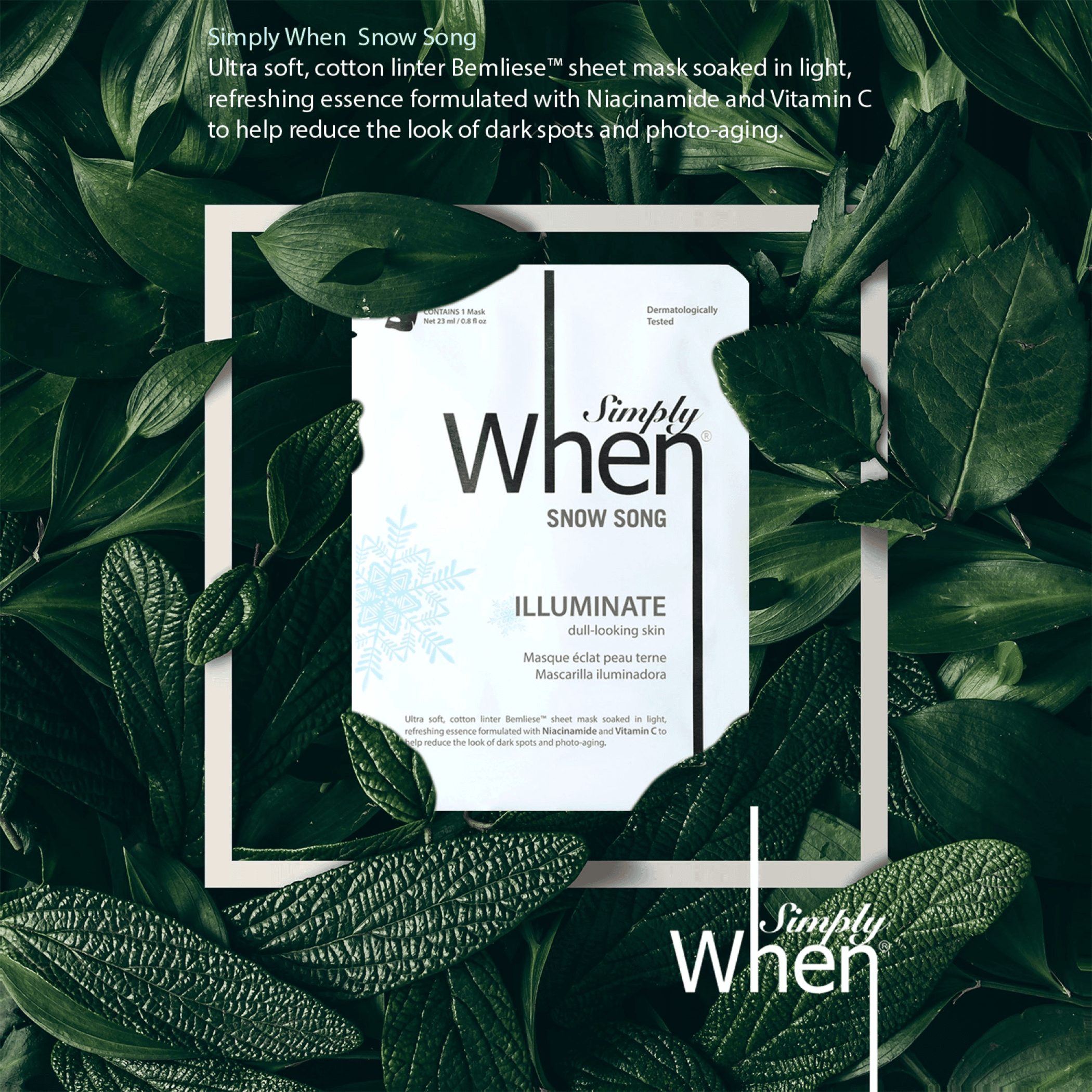 When your skin is looking dull, turn to Simply When Snow Song Illuminate Cotton Linter Sheet Mask.