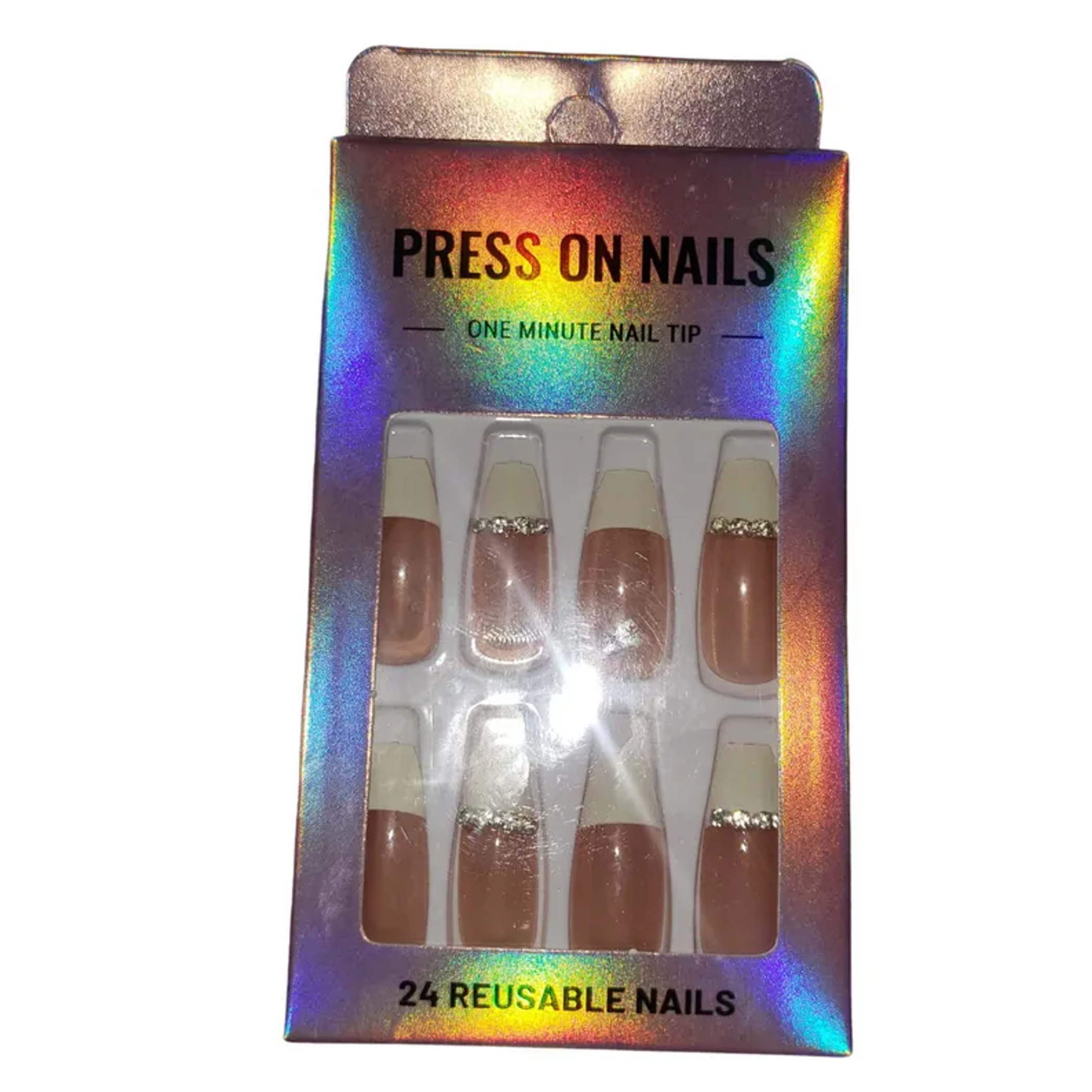 You may choose your nail style and quantity. There is no glue included only press-on stickers to make press-on nails. Nail glue is sold separately.